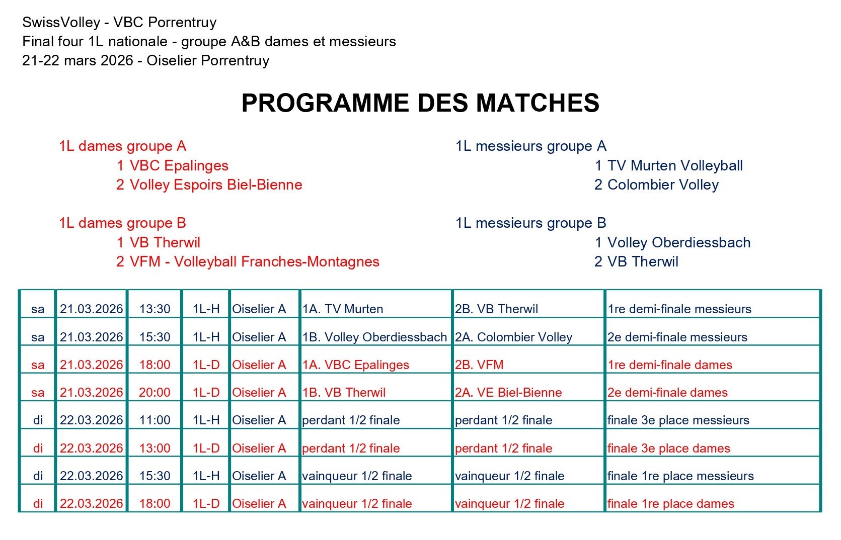 Les dames du VFM et de VEBB au Final4 de 1L, ce week-end prochain à l’Oiselier à Porrentruy 😍 Venez nombre à l’oiselier ce week-end pour soutenir les dames du VFM et de VEBB au Final4 de 1L.