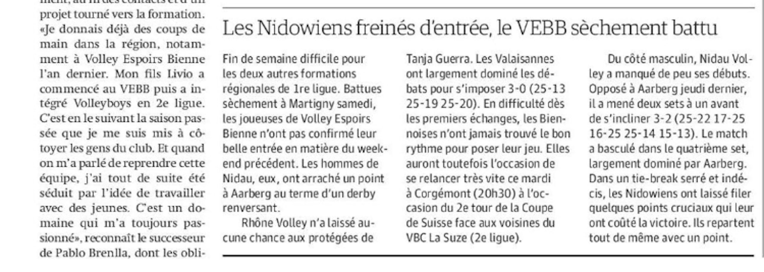 1ère ligue: Nidau gagne, le VEBB et Volleyboys non