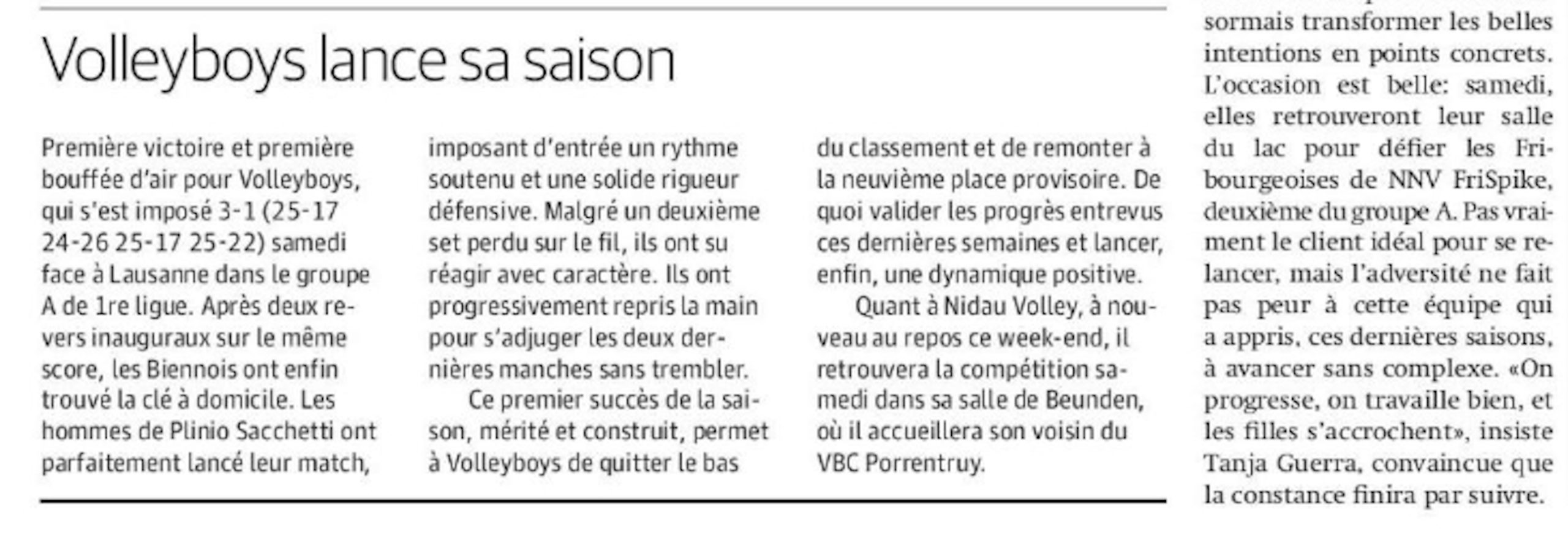 1re ligue: Nidau cartonne, Volleyboys et La Suze à la peine