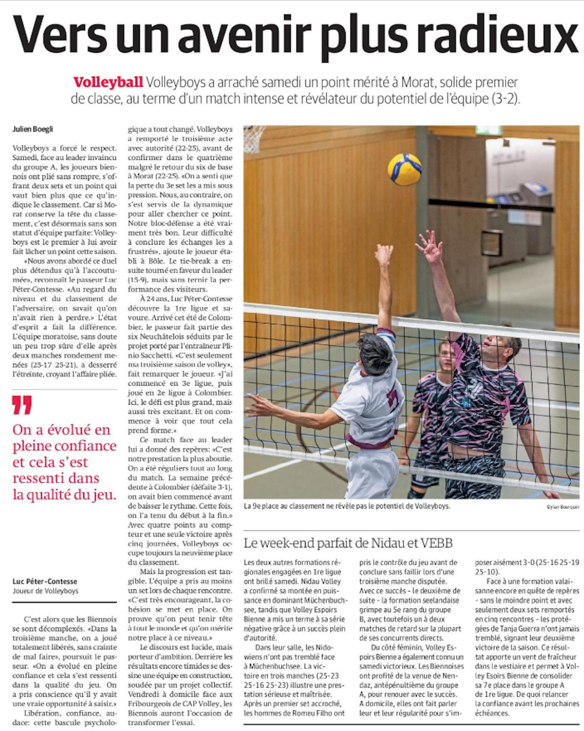 Volley 1re ligue: Vers un avenir plus radieux à Volleyboys. Un week-end parfait pour Nidau et le VEBB