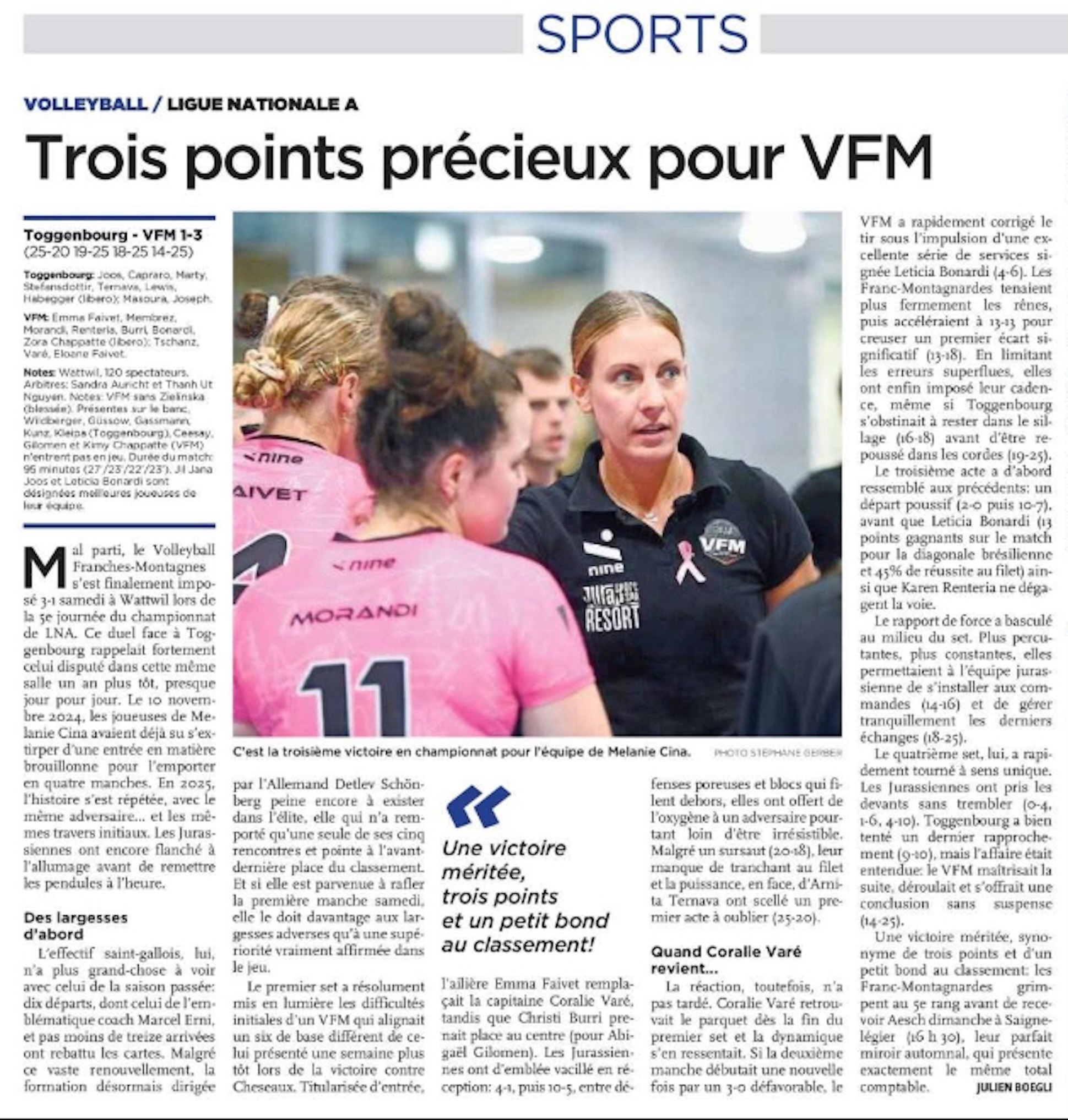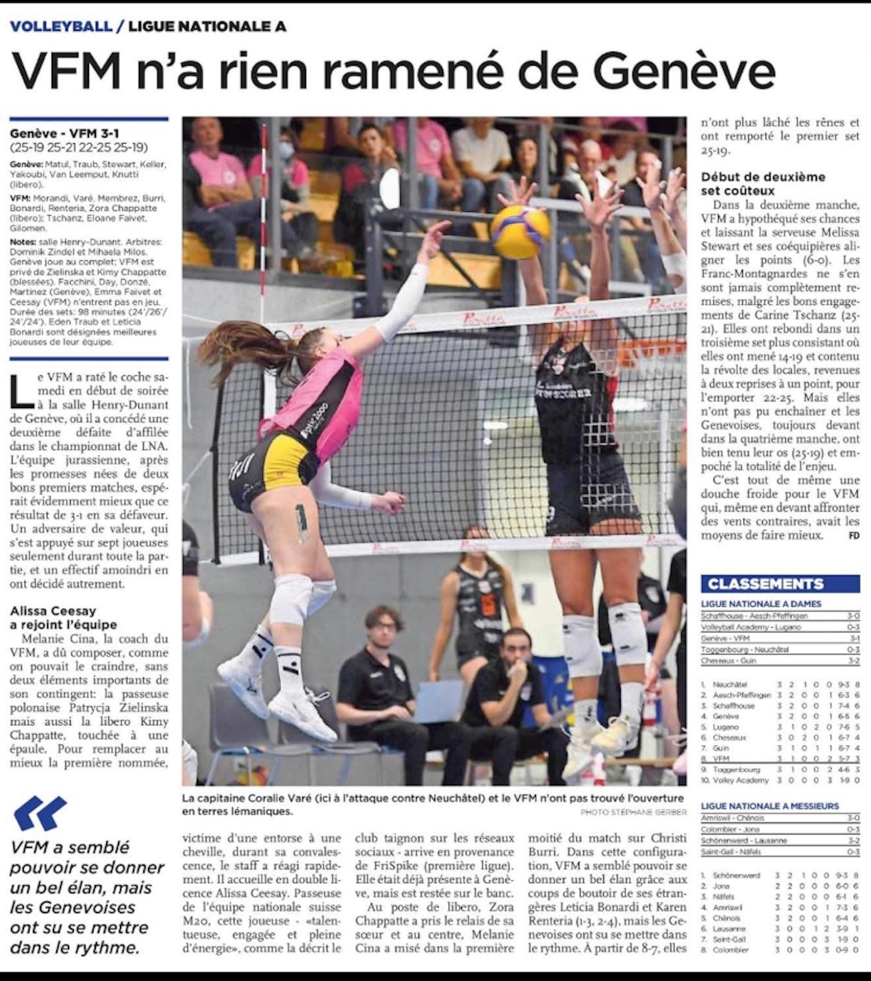 LNA: Trois points précieux pour VFM, qui s’impose 3-1 face à Toggenbourg