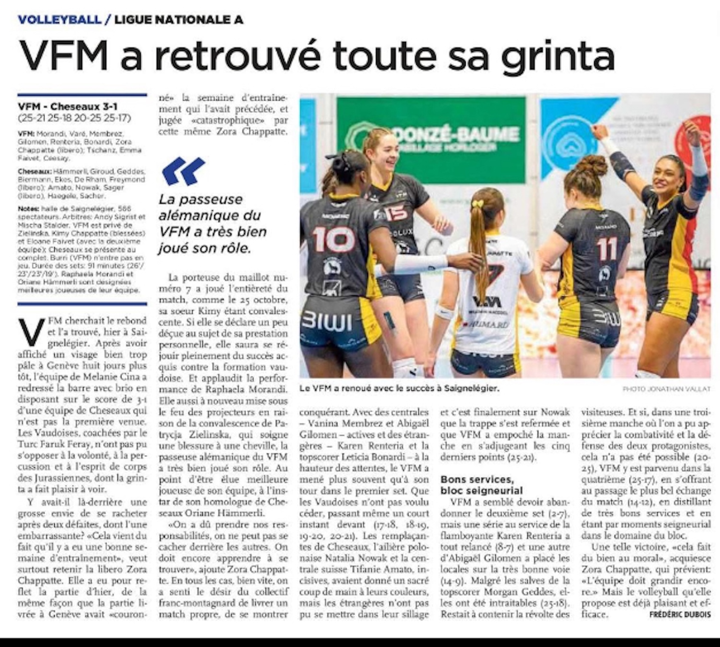 LNA: VFM reçoit un VBC Cheseaux affamé